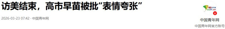 访好意思限定,高市早苗被批“样子夸张”-2026-03-23 07:42·中国后生网