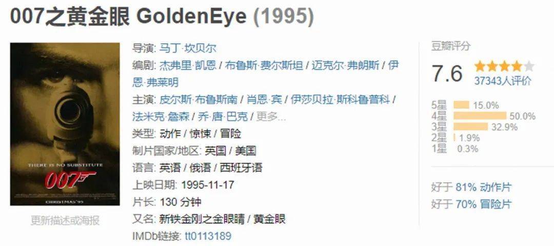 那么,为何《007之黄金眼》能成为系列豆瓣最高分的单片呢?